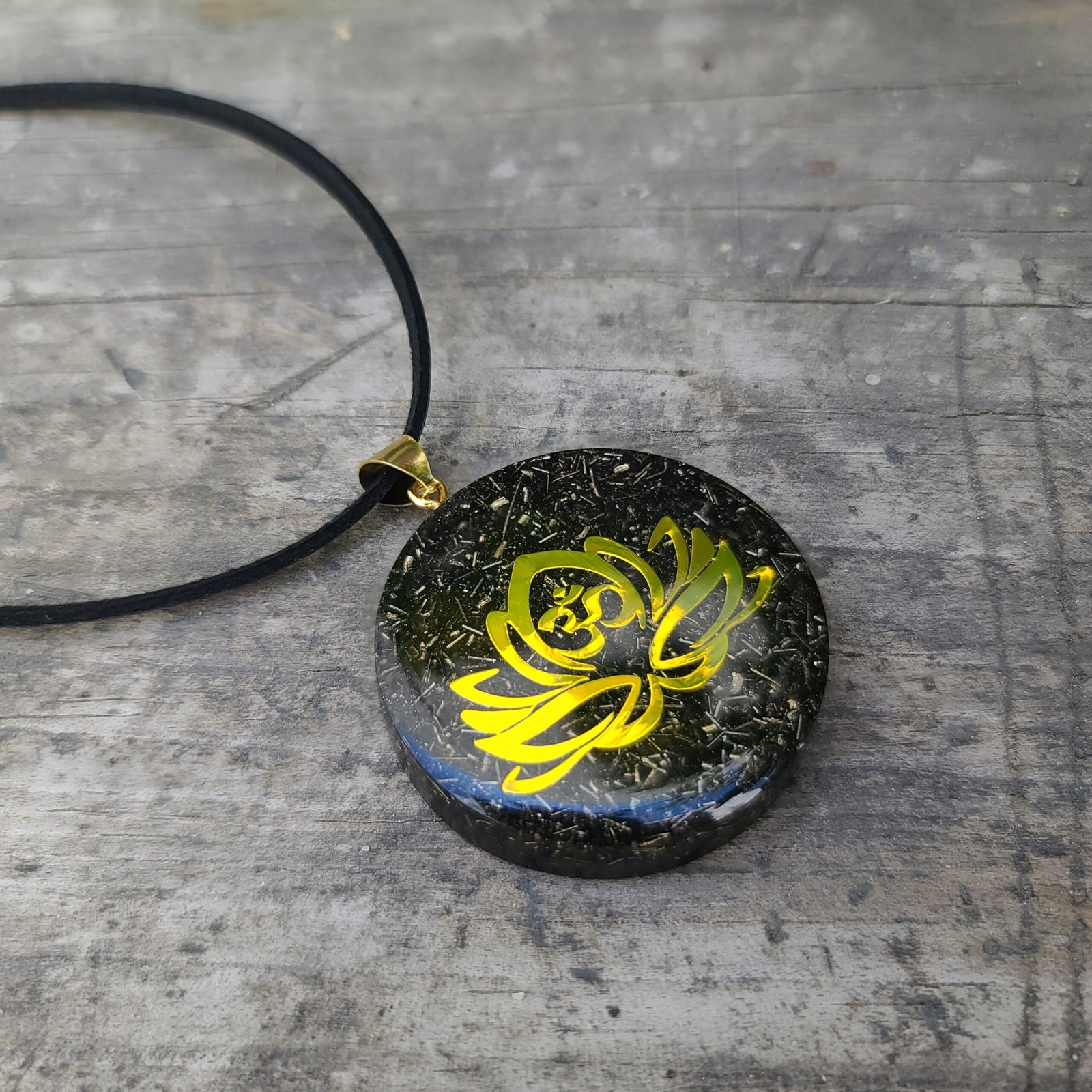 Esta orgonita funde el sagrado OM, la vibración primordial, con la Flor de Loto, símbolo del despertar desde las profundidades. La energía orgónica potencia esta unión, creando un campo de resonancia que sintoniza tu ser con la frecuencia original de la creación.