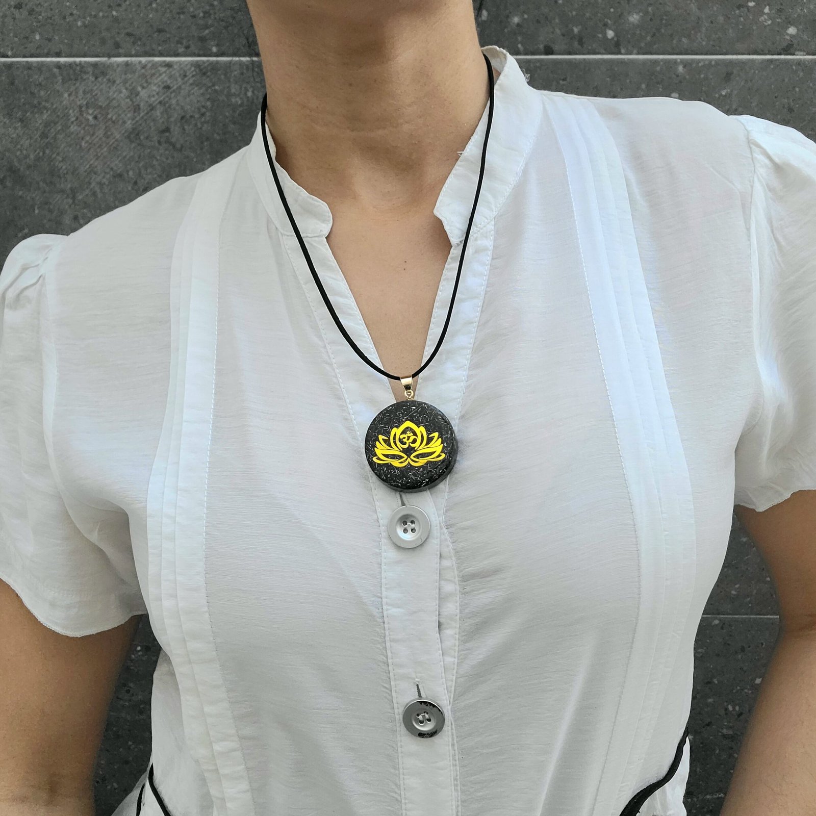 Actúa como un diapasón para el alma, afinando cada capa de tu existencia hacia la armonía universal. El OM purifica y eleva, mientras el loto transforma la densidad en belleza y conciencia. Juntos, facilitan una meditación profunda, disolviendo bloqueos y recordando la quietud luminosa de tu núcleo esencial.