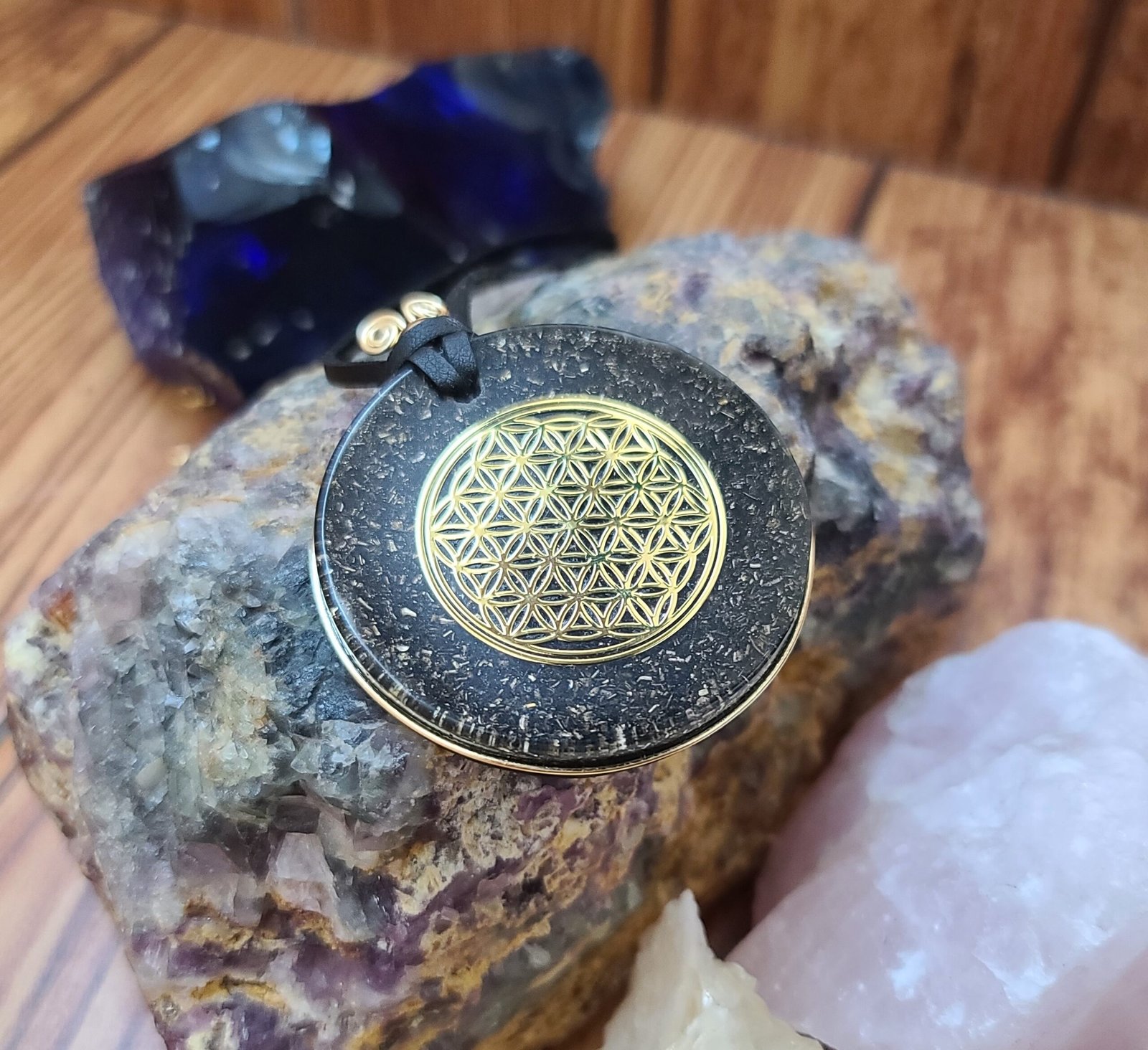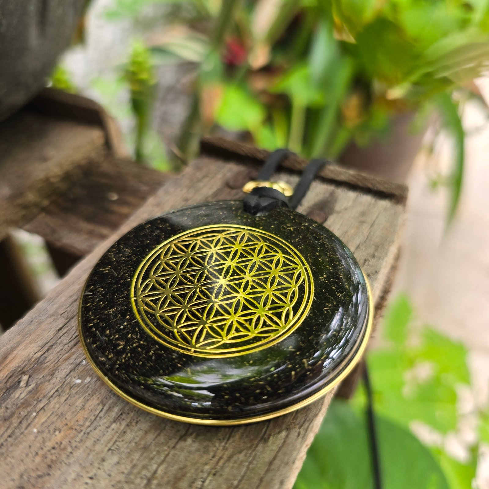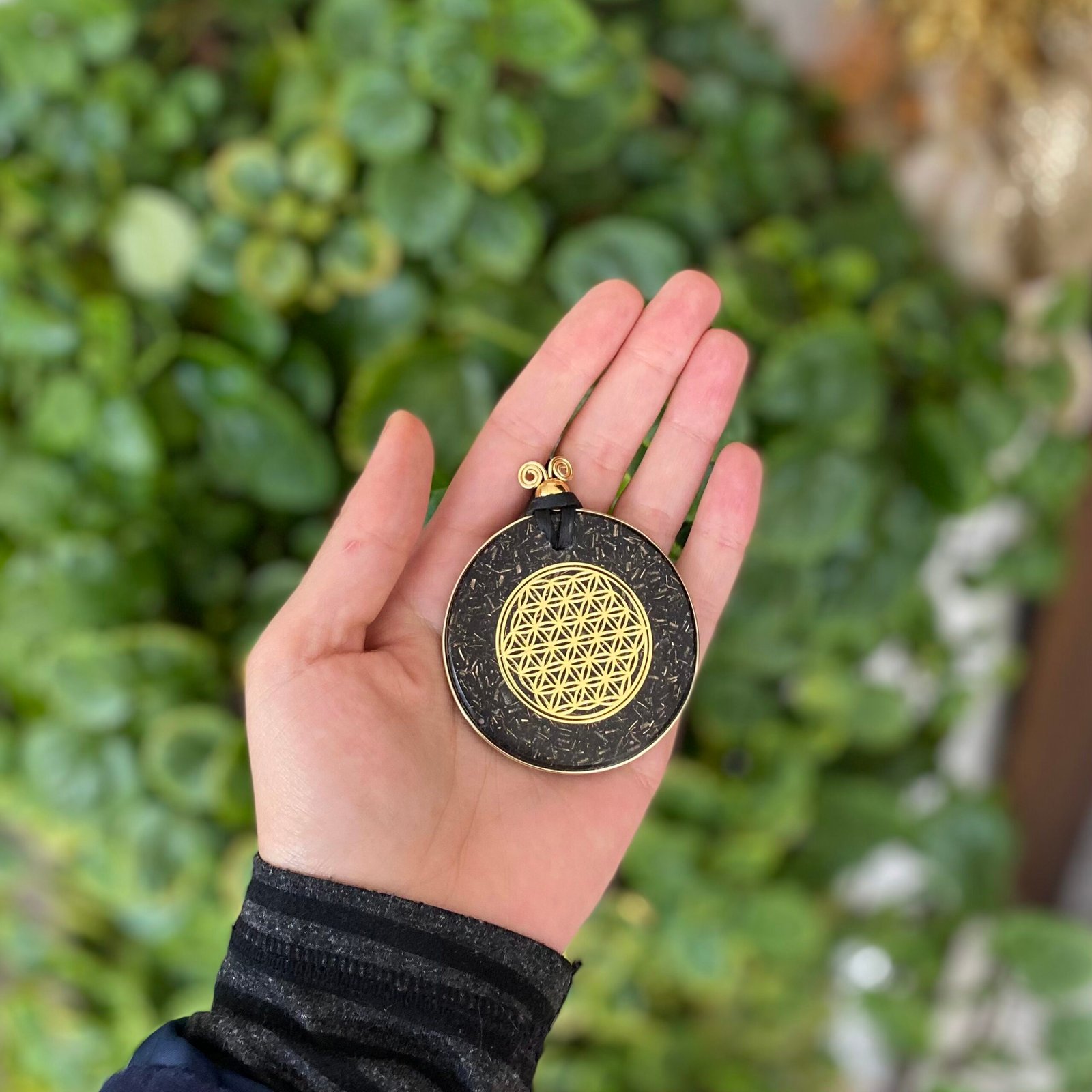 Medallón Orgonita Flor de la Vida: Lleva el patrón del cosmos sobre tu corazón. Este diseño sagrado teje armonía en tu campo áurico, recordando a cada célula su lugar en la creación infinita. Un recordatorio portátil de que eres un universo completo.