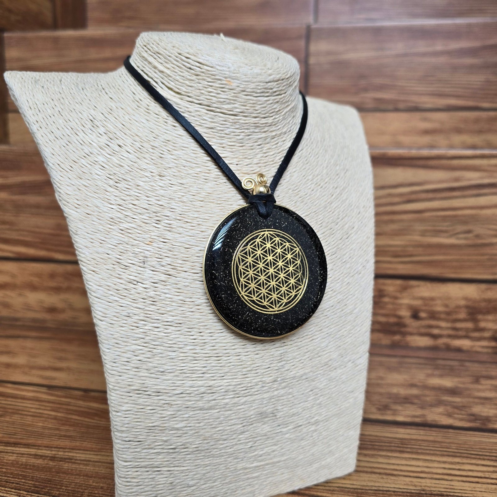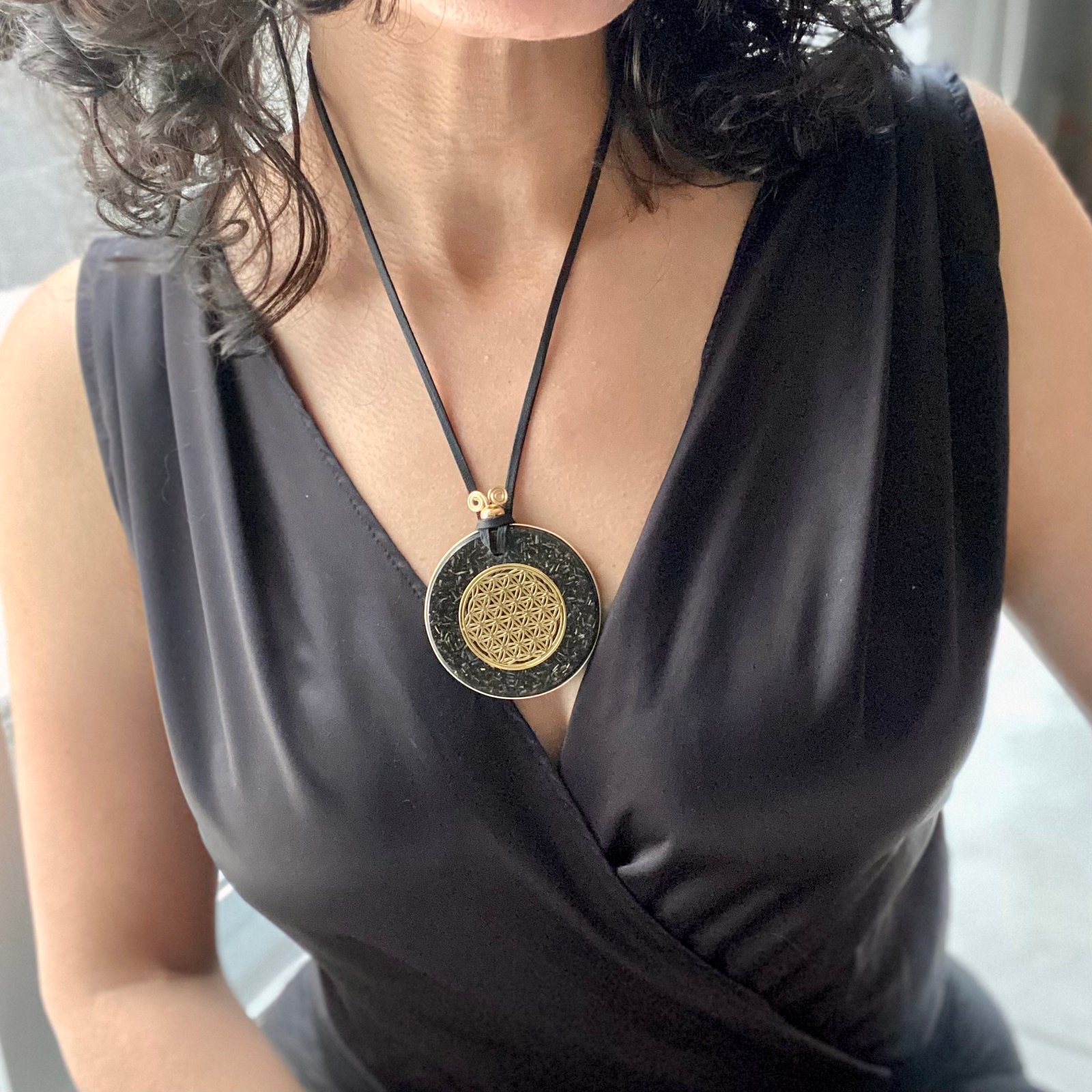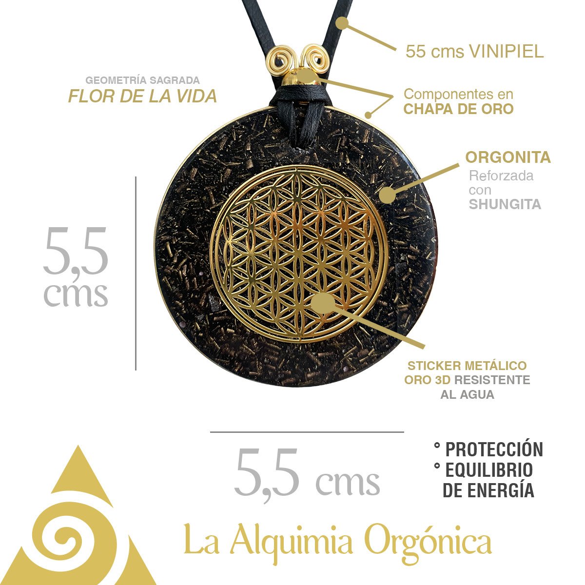 Medallón Orgonita Flor de la Vida: Lleva el patrón del cosmos sobre tu corazón. Este diseño sagrado teje armonía en tu campo áurico, recordando a cada célula su lugar en la creación infinita. Un recordatorio portátil de que eres un universo completo.