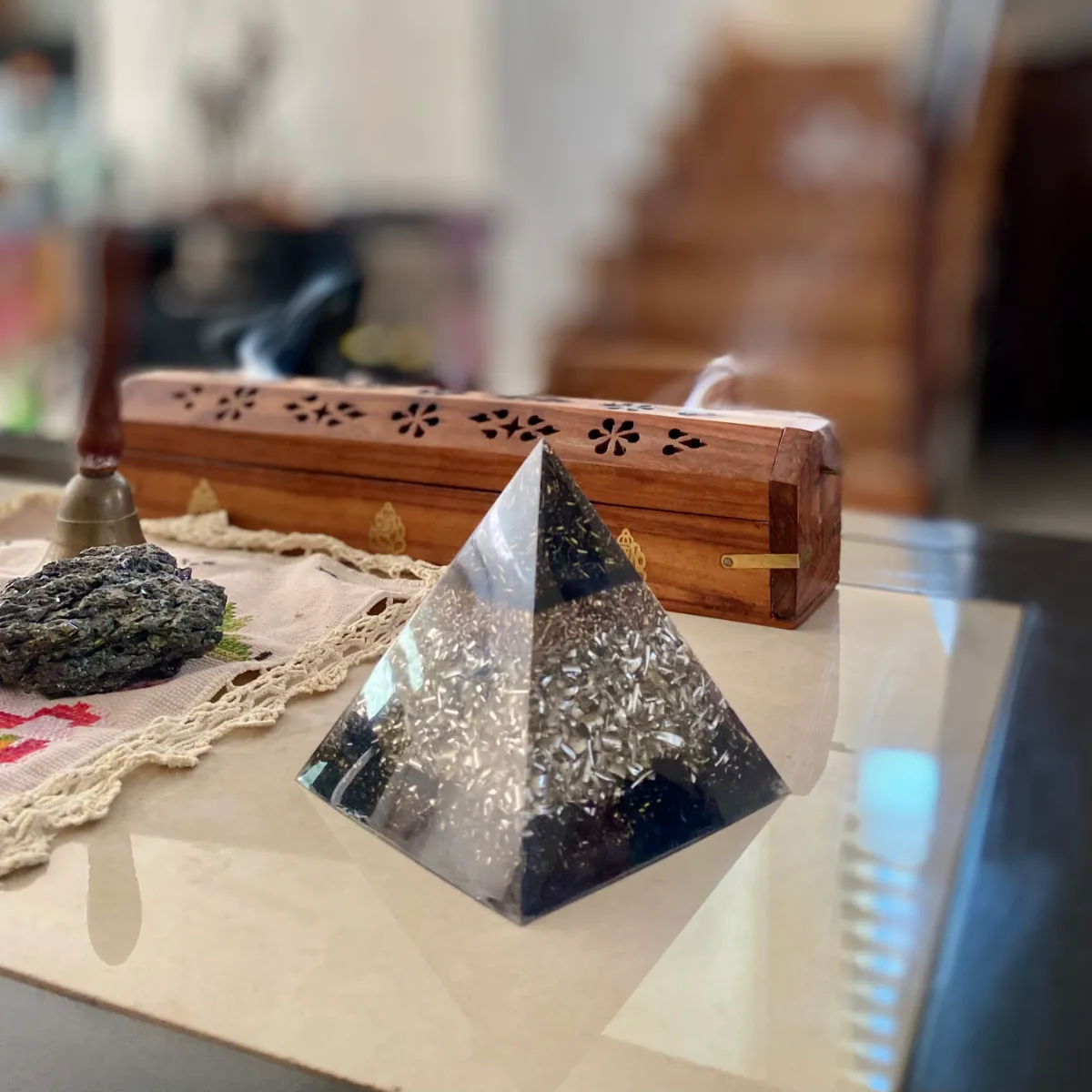 La Orgonita es hecha a mano con la integración de geometrías sagradas que activan tu memoria estelar.